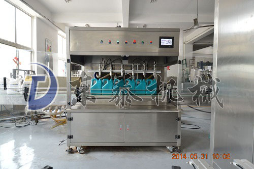 該潤滑油灌裝生產線引進國外先進技術開發的新產品,集機械、電子、氣動為一體。該生產線由理瓶機、直線式灌裝機、旋蓋機、貼標機、噴碼機等組成。具有自動化程度高、成品率高、適用性廣、穩定性好而受到廣大用戶青睞。該生產線能自動完成理瓶、灌裝、旋蓋、貼標、噴碼等功能。裝量精度高、使用使用壽命長、耐高溫、耐酸堿,填補了國內空白。適用于油類半流體等不同粘度物料的灌裝,充分體現了本公司在產品設計、制造上的優勢。灌裝系統采用PLC微電腦、人機界面組合控制、操作簡單、維護方便。所有接觸物料部分的材料和裝潢材料全部采用優質不銹鋼制造,表面進行了拋光處理,外形美觀、大方,不污染環境,符合GMP要求。