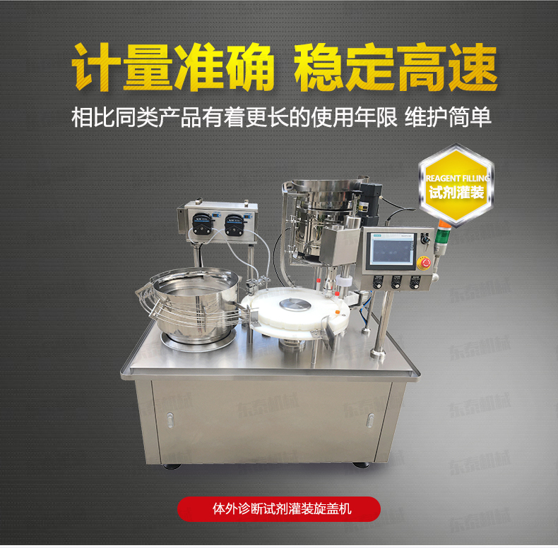 診斷試劑灌裝旋蓋一體機是在引進和吸收國外技術(shù)的基礎(chǔ)上,由我公司自主研發(fā)的一款I(lǐng)VD診斷試劑灌裝旋蓋一體機,能同時完成自動理瓶、自動上瓶、定量灌裝、自動理蓋、上蓋和旋蓋封口等動作。本機采用日本高精度封閉式凸輪分度工位器,精度高,運行可靠,使用壽命長。該分度器結(jié)構(gòu)簡單,長期使用無需維修。該型號設(shè)備主要用于ⅣD體外診斷試劑制藥、生物制藥行業(yè)及科研領(lǐng)域裝。機器設(shè)計緊湊合理、外形簡潔美觀,灌裝量調(diào)節(jié)方便。