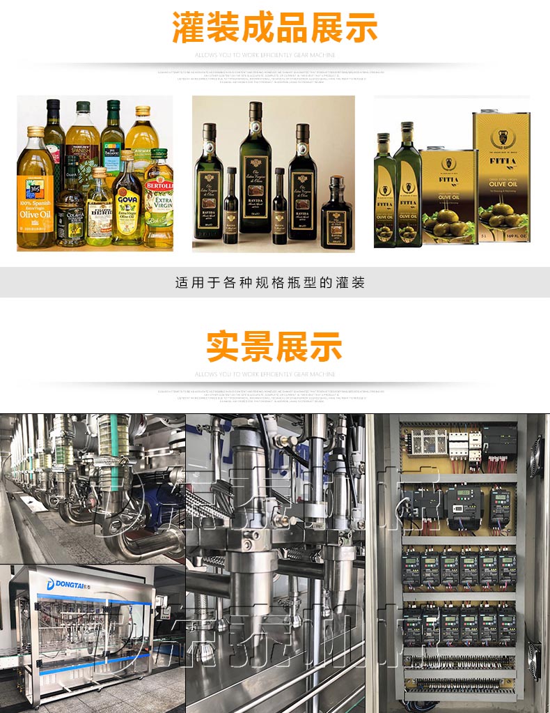 橄欖油采用PLC微電腦可編程控制,集光、機、電、傳感、氣動執行于一體。橄欖油灌裝流水線中的注射缸活塞行程采用伺服電機驅動,行程定位精卻,并設定了快慢速灌裝。當灌裝量接近瓶口時,速度壓力減小,以防物料因沖力大而飛濺溢出。該橄欖油自動灌裝機自動化程度高,調節方便,當改變規格或修正計量時只需在顯示屏上調整即可滿足所需精卻計量。橄欖油自動灌裝機,橄欖油灌裝流水線可適用于植物油、蜂蜜、果醬、糖漿、制劑、懸浮劑、機油和日化行業各種粘稠物料的灌裝。